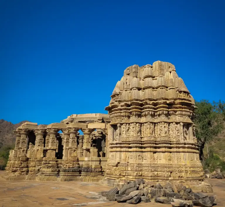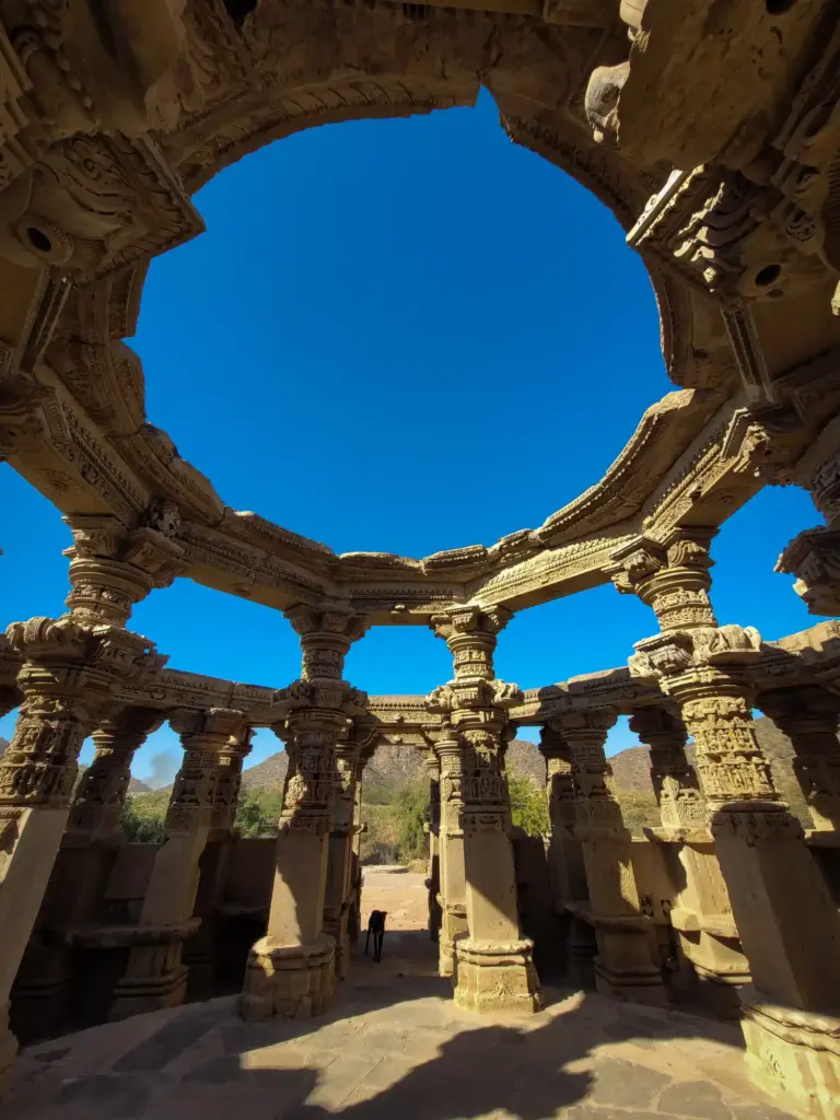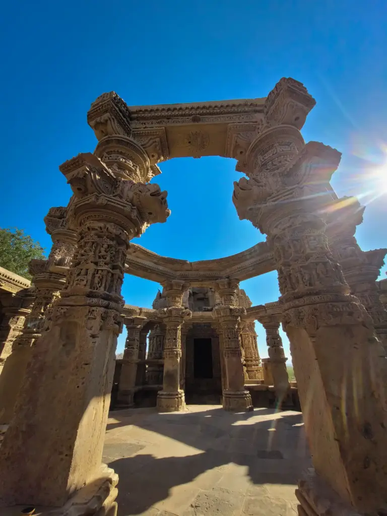 Standing inside Kiradu, with its five main temples and one central shrine still in relatively good shape, I felt a strong link to that past. The intricate pillars, carved ceilings, and surviving shikharas instantly reminded me of Kopeshwar temple in Khidrapur, Maharashtra, another Chalukya-era masterpiece that shares similar ornamental richness. This place almost felt like a replica in spirit, as if Khidrapur’s design had been echoed in stone here in the Thar. Yet the sadness was impossible to ignore: after the fall of the Chalukyas, invaders from the Middle East devastated the complex, and today even the staff posted there seem indifferent. There were no toilets, no proper visitor facilities, and the temples were left to slowly decay despite their extraordinary architecture.