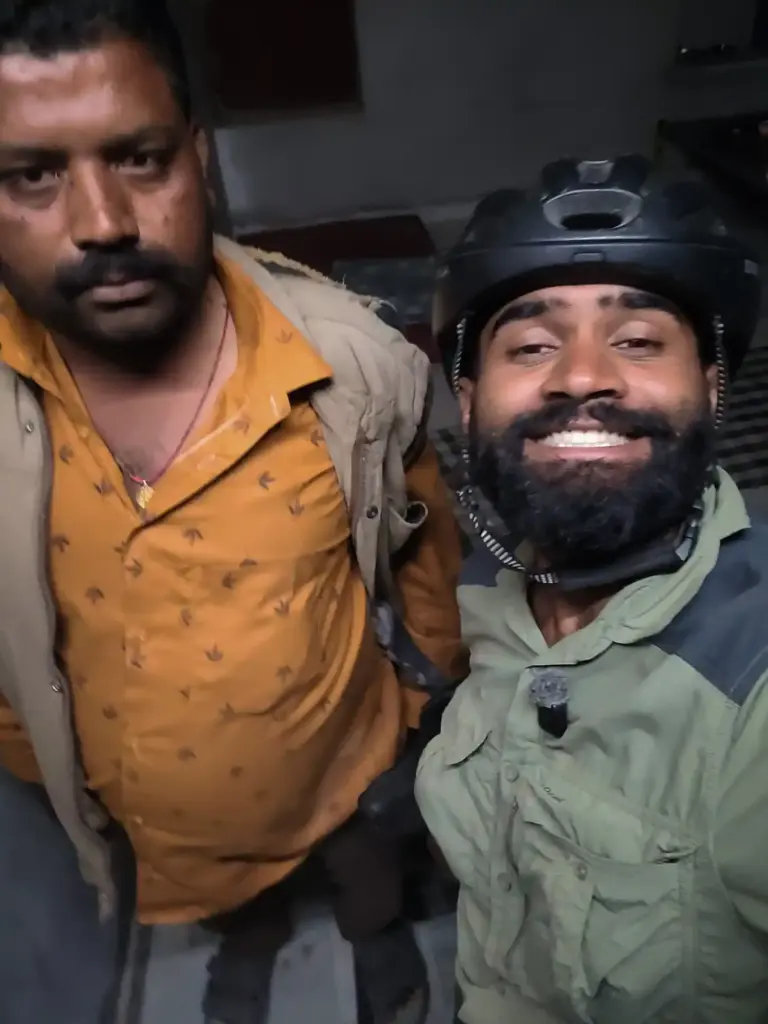 Finally, BSF made it clear that I had the authorization and right to travel along the highway and that they could not stop me just for riding a cycle; they refused to interfere in my journey. That should have ended the matter, but instead of apologising, the local police just redirected me to sleep at a small roadside restaurant. The floor was filthy, open to the highway dust and noise. I was sitting there, wondering how this day had turned from sacred temples to harassment, when another character entered the story: Kalu Bhai.